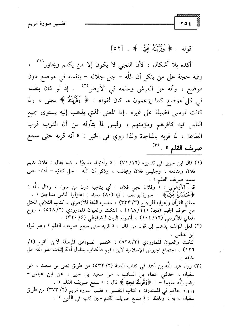 قوله: (وَقَرَّبْنَاهُ نَجِيًّا (52)