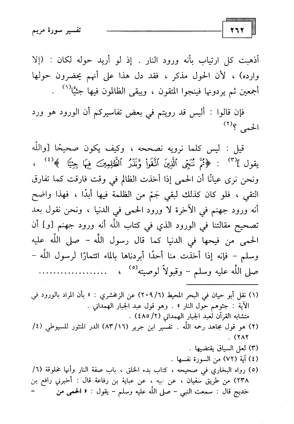 أنه ورود جهنم في الآخرة لا ورود الحمى في الدنيا، ونحن نقول بعد