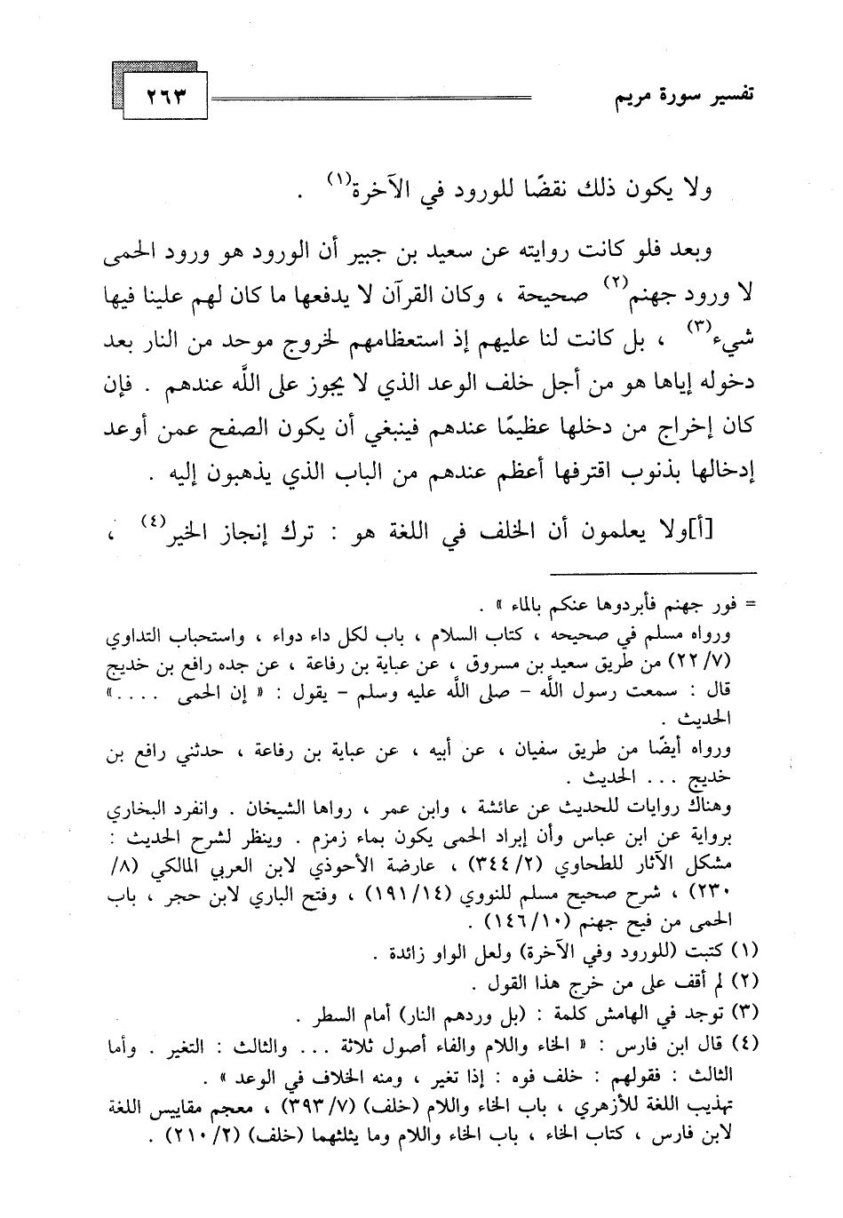ولا يكون ذلك نقضًا للورود في الآخرة.