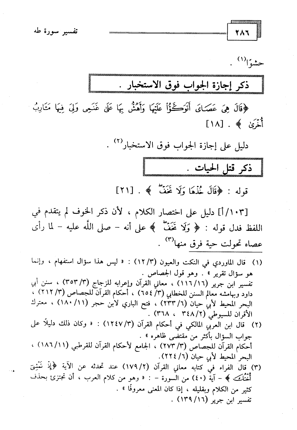 (قَالَ هِيَ عَصَايَ أَتَوَكَّأُ عَلَيْهَا وَأَهُشُّ بِهَا عَلَى غَنَمِي وَلِيَ فِيهَا مَآرِبُ أُخْرَى (18)