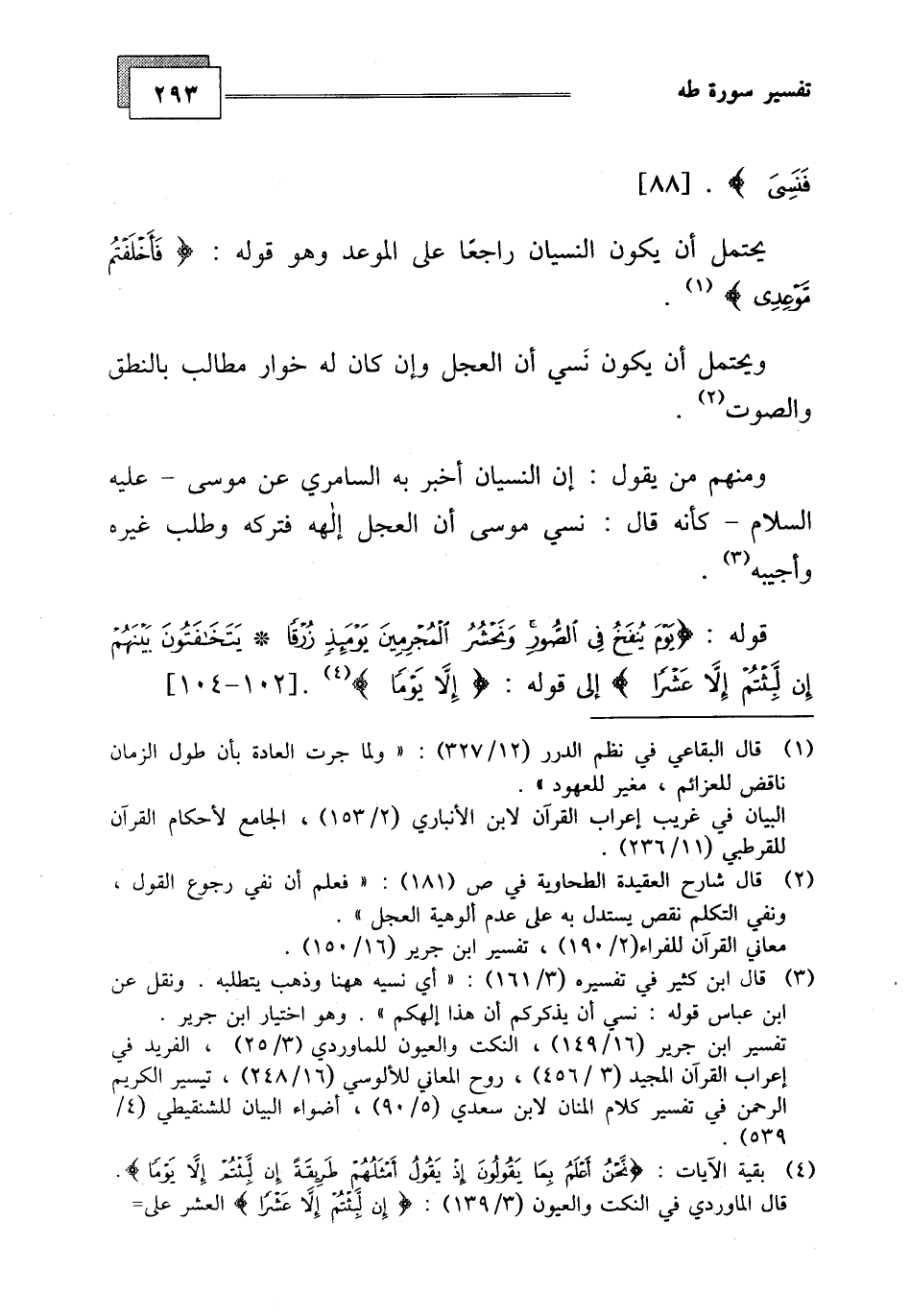 ومنهم من يقول: إن النسيان أخبر به السامري عن موسى - عليه