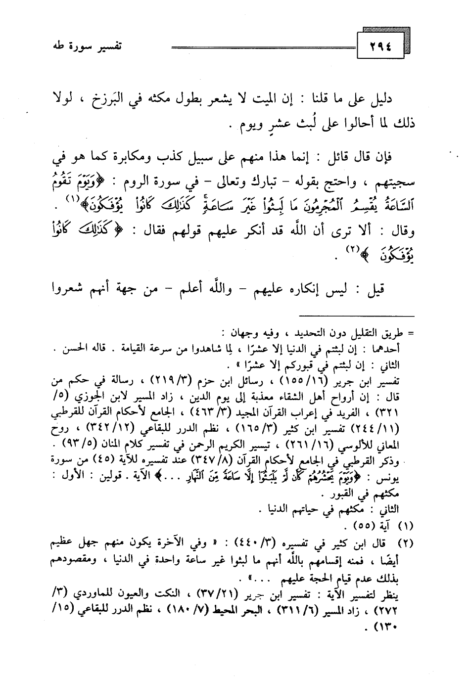 دليل على ما قلنا: إن الميت لا يشعر بطول مكثه في البَرزخ، لولا