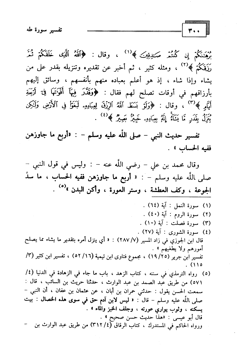 تفسير حديث النبي - صلى الله عليه وسلم -: (أربع ما جاوزهن