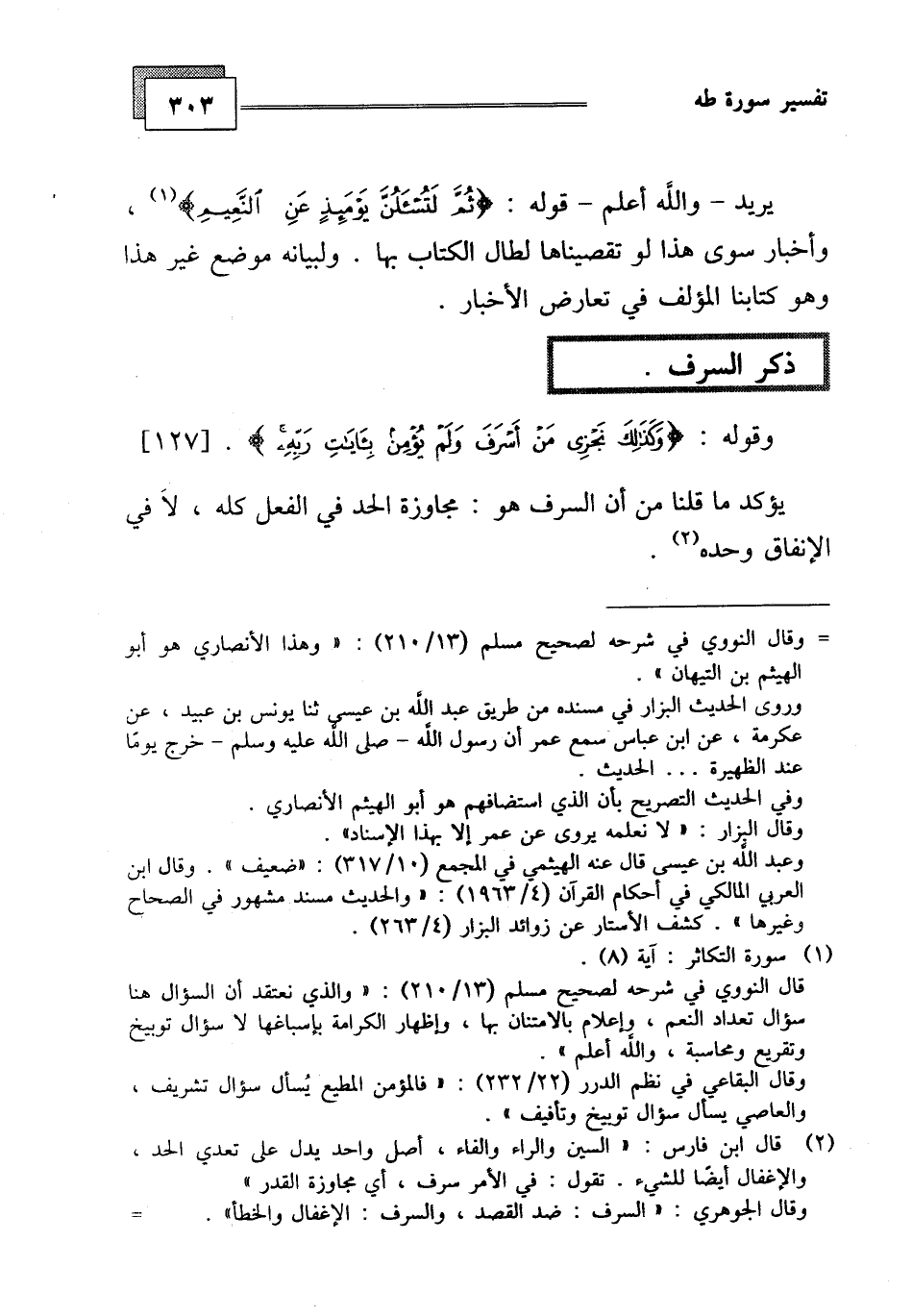 يريد - والله أعلم - قوله: (ثُمَّ لَتُسْأَلُنَّ يَوْمَئِذٍ عَنِ النَّعِيمِ (8) .