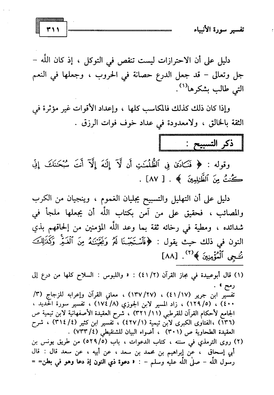 وقوله: (فَنَادَى فِي الظُّلُمَاتِ أَنْ لَا إِلَهَ إِلَّا أَنْتَ سُبْحَانَكَ إِنِّي كُنْتُ مِنَ الظَّالِمِينَ (87)