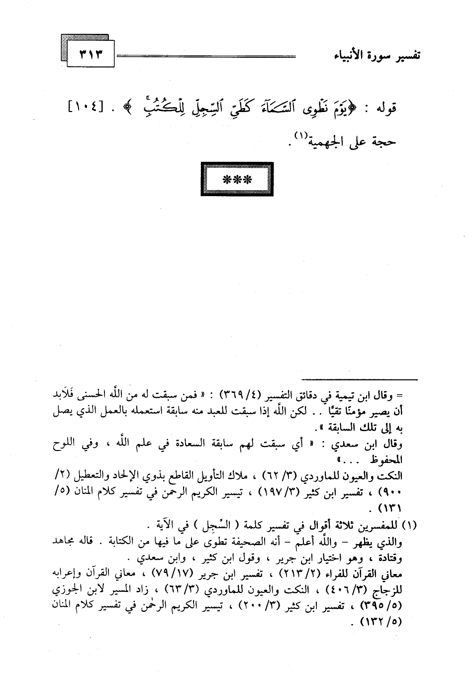 قوله: (يَوْمَ نَطْوِي السَّمَاءَ كَطَيِّ السِّجِلِّ لِلْكُتُبِ)