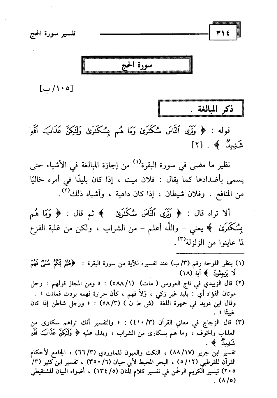 قوله: (وَتَرَى النَّاسَ سُكَارَى وَمَا هُمْ بِسُكَارَى وَلَكِنَّ عَذَابَ اللَّهِ شَدِيدٌ (2)