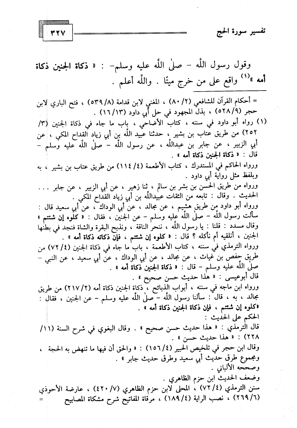 وقول رسول الله - صلى الله عليه وسلم -: " ذكاة الجنين ذكاة