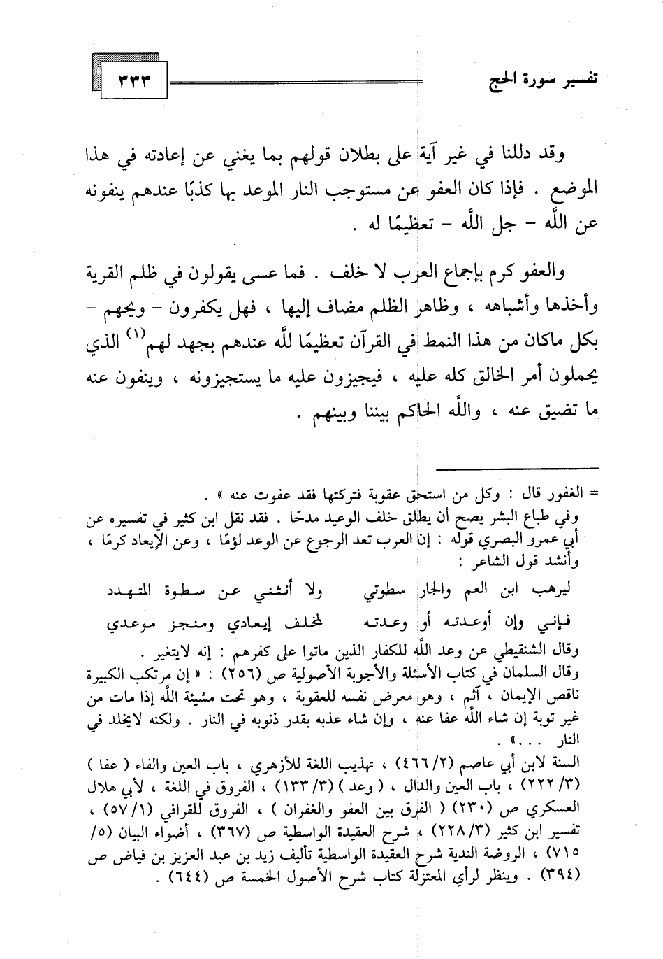 الموضع. فإذا كان العفو عن مستوجب النار الموعد بها كذبا عندهم ينفونه
