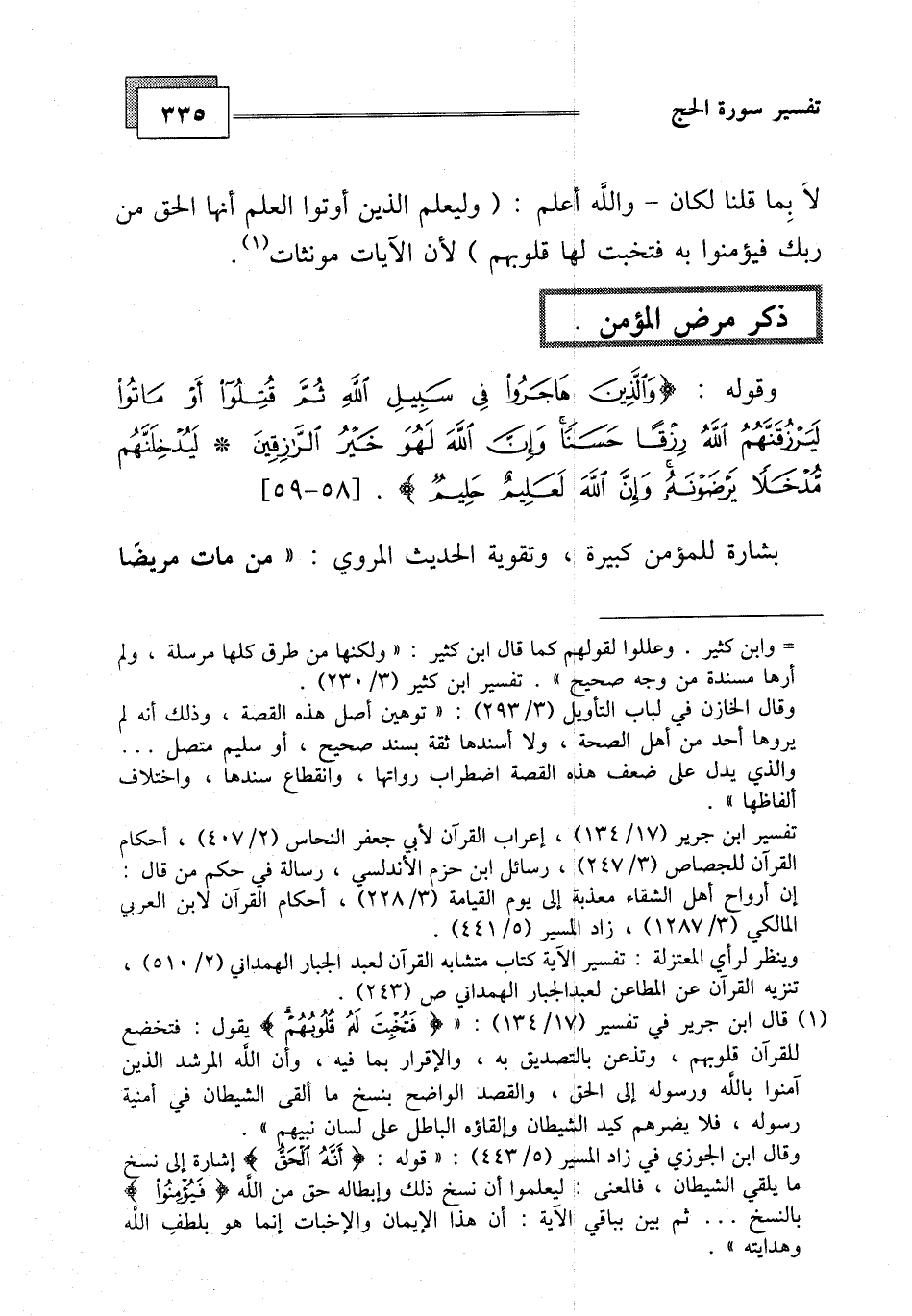 بشارة للمؤمن كبيرة، وتقوية الحديث المروي: " من مات مريضَا