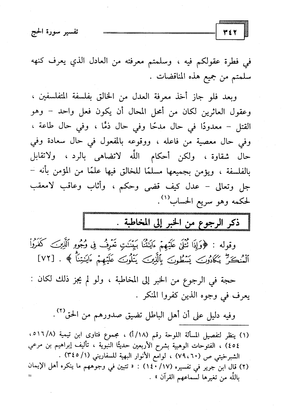 حجة في الرجوع من الخبر إلى المخاطبة، ولو لم يجز ذلك لكان: