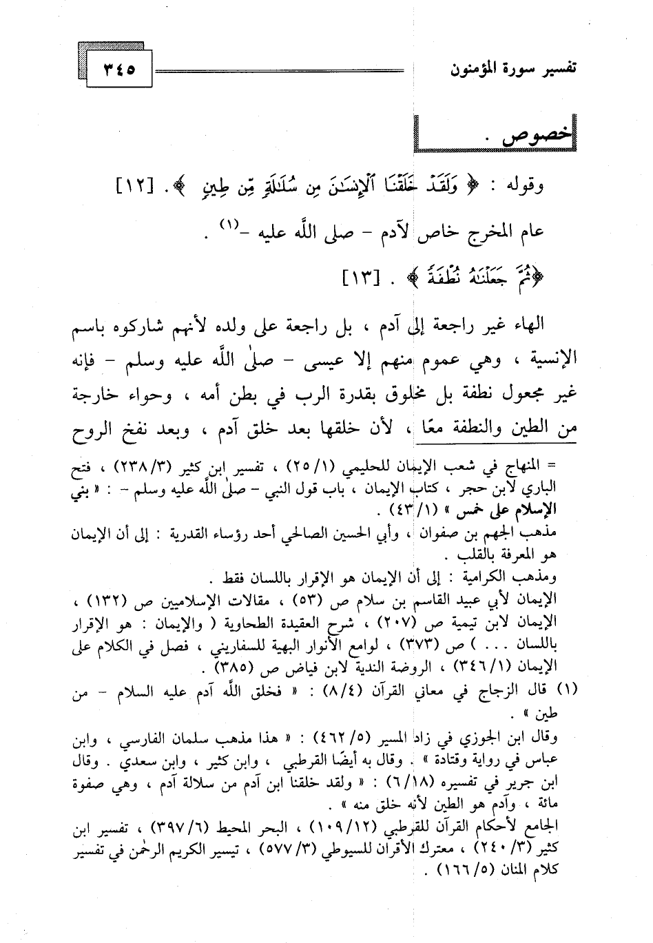 وقوله: (وَلَقَدْ خَلَقْنَا الْإِنْسَانَ مِنْ سُلَالَةٍ مِنْ طِينٍ (12)