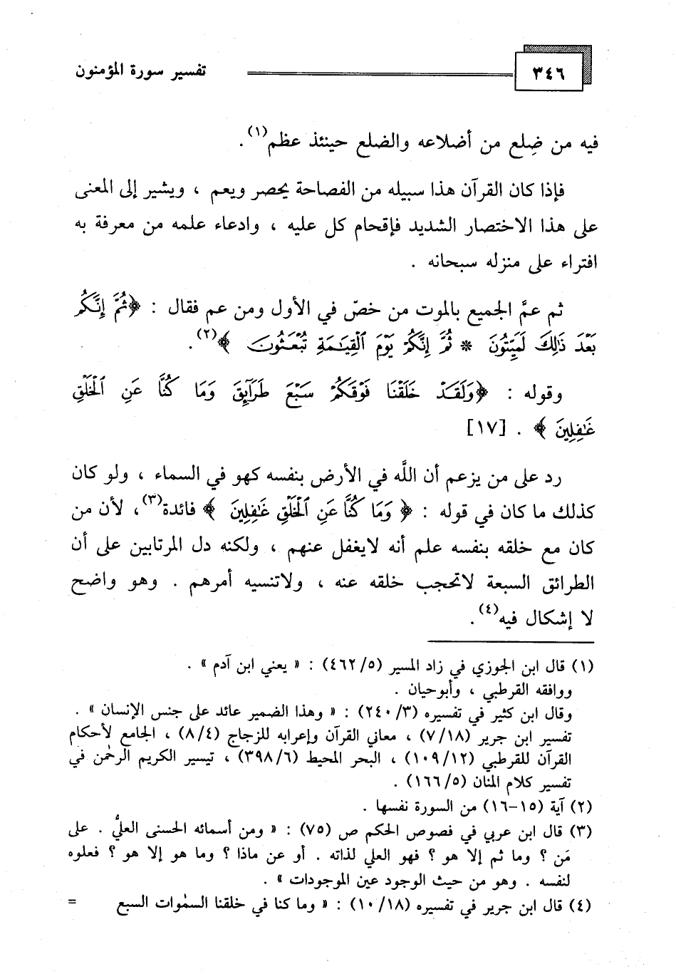 وقوله: (وَلَقَدْ خَلَقْنَا فَوْقَكُمْ سَبْعَ طَرَائِقَ وَمَا كُنَّا عَنِ الْخَلْقِ غَافِلِينَ (17) .