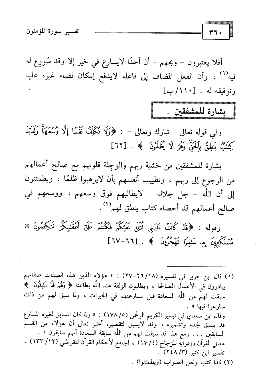 وفي قوله تعالى - تبارك وتعالى -: (وَلَا نُكَلِّفُ نَفْسًا إِلَّا وُسْعَهَا وَلَدَيْنَا كِتَابٌ يَنْطِقُ بِالْحَقِّ وَهُمْ لَا يُظْلَمُونَ (62)