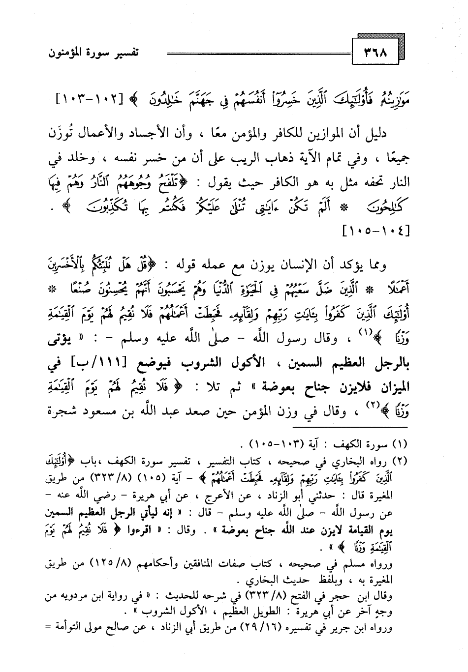 ، وقال في وزن المؤمن حين صعد عبد الله بن مسعود شجرة