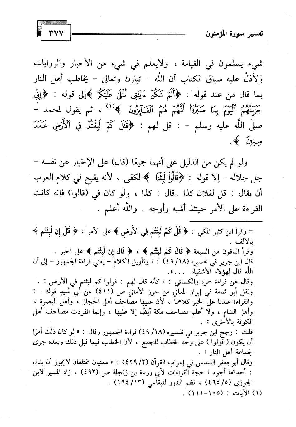 إلى قوله: (إِنِّي جَزَيْتُهُمُ الْيَوْمَ بِمَا صَبَرُوا أَنَّهُمْ هُمُ الْفَائِزُونَ (111) .