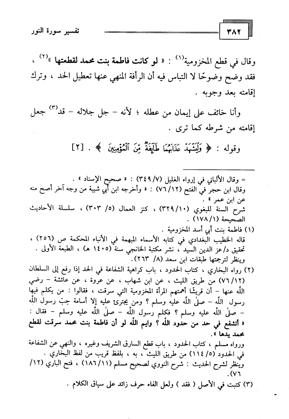وقال في قطع المخزومية: " لو كانت فاطمة بنت محمد لقطعتها ".