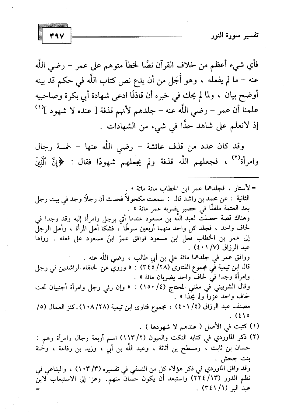 علمنا أن عمر - رضي الله عنه - جلدهم لأنهم قذفة عنده لا شهود.