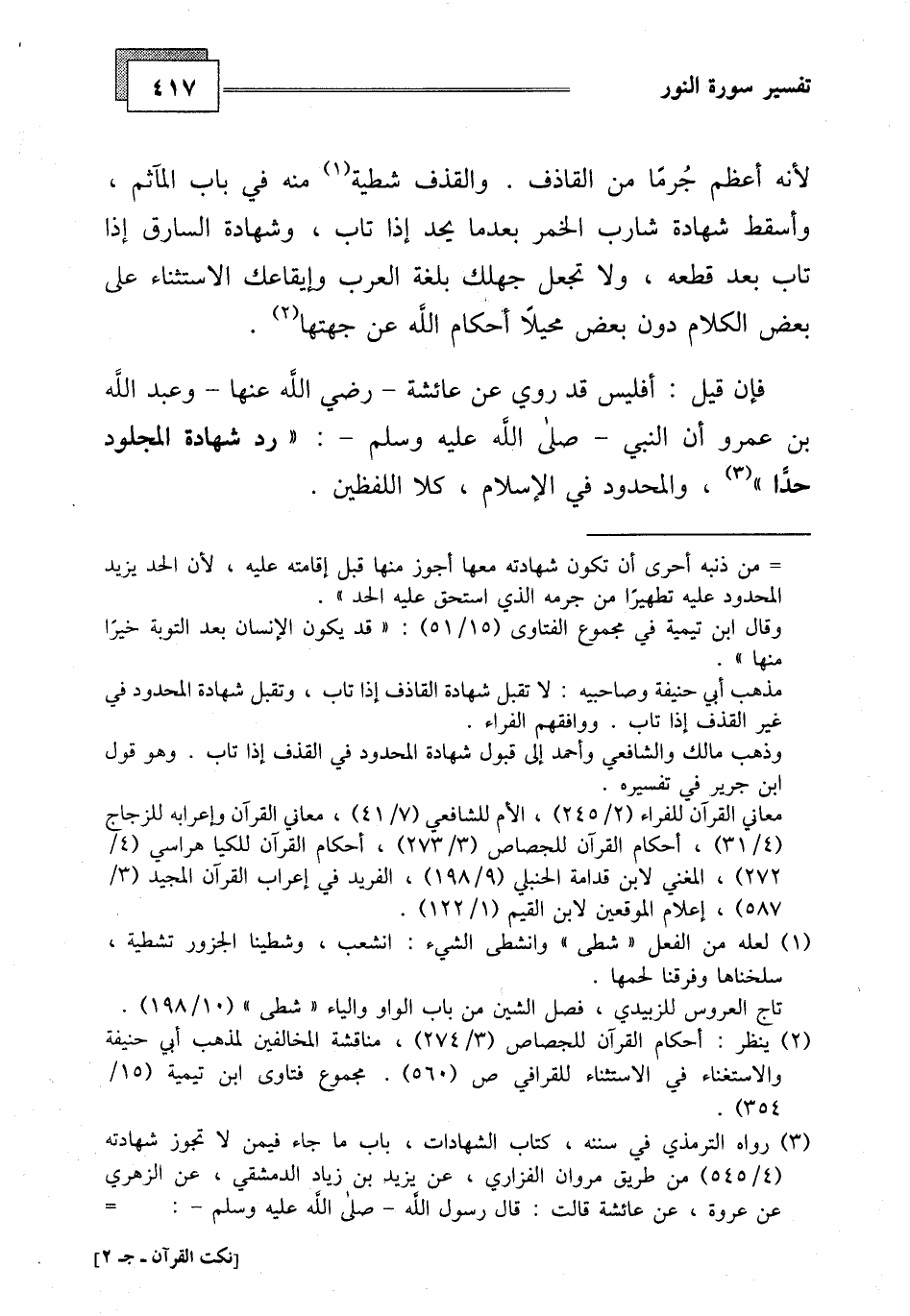 بن عمرو أن النبي - صلى الله عليه وسلم -: " رد شهادة المجلود