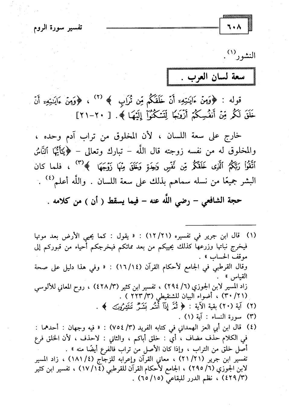 قوله: (وَمِنْ آيَاتِهِ أَنْ خَلَقَكُمْ مِنْ تُرَابٍ)