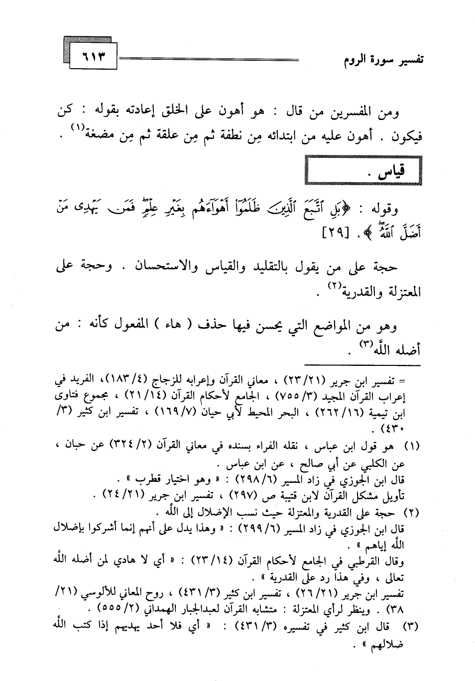 حجة على من يقول بالتقليد والقياس والاستحسان. وحجة على