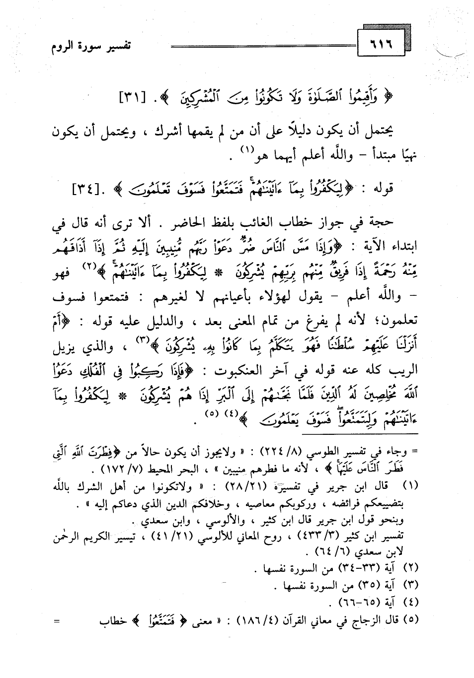 قوله: - (لِيَكْفُرُوا بِمَا آتَيْنَاهُمْ فَتَمَتَّعُوا فَسَوْفَ تَعْلَمُونَ (34)