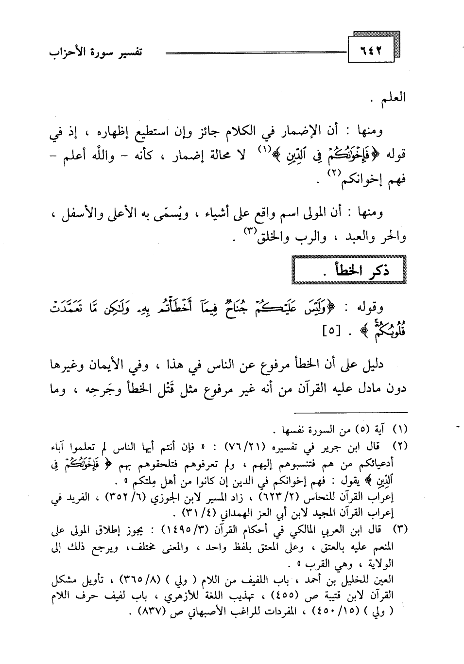 وقوله: (وَلَيْسَ عَلَيْكُمْ جُنَاحٌ فِيمَا أَخْطَأْتُمْ بِهِ وَلَكِنْ مَا تَعَمَّدَتْ قُلُوبُكُمْ)