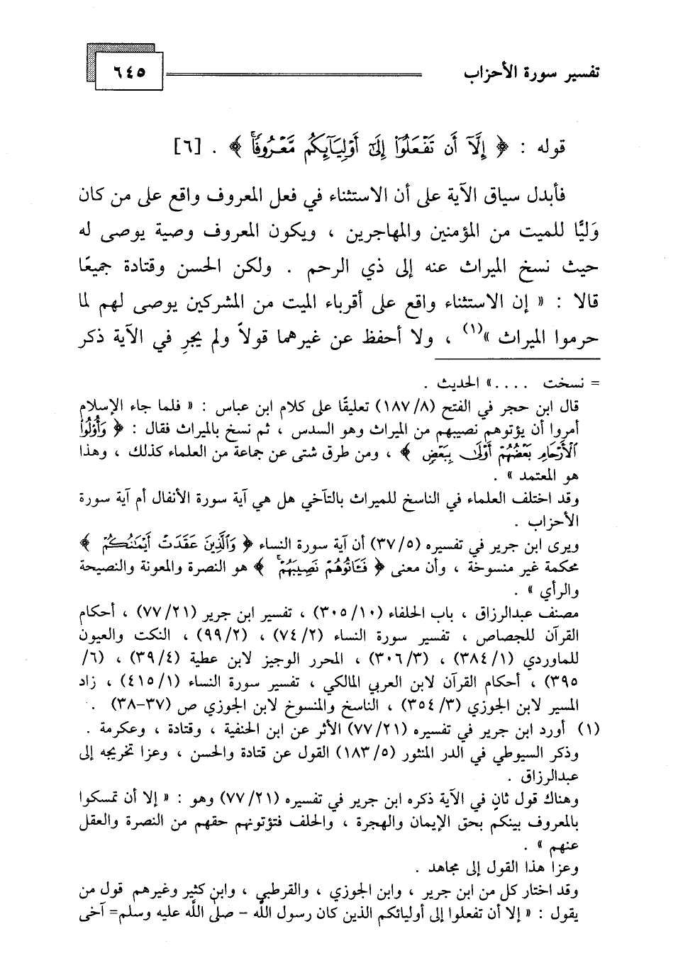 حيث نسخ الميراث عنه إلى ذي الرحم. ولكن الحسن وقتادة جميعا