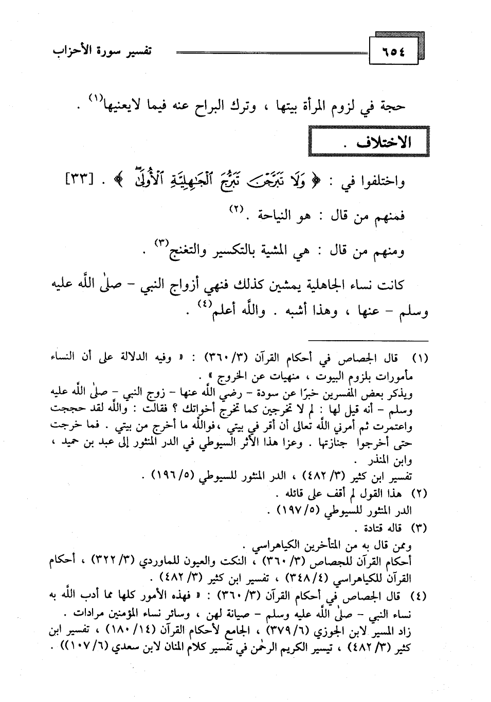 واختلفوا في: (وَلَا تَبَرَّجْنَ تَبَرُّجَ الْجَاهِلِيَّةِ الْأُولَى)