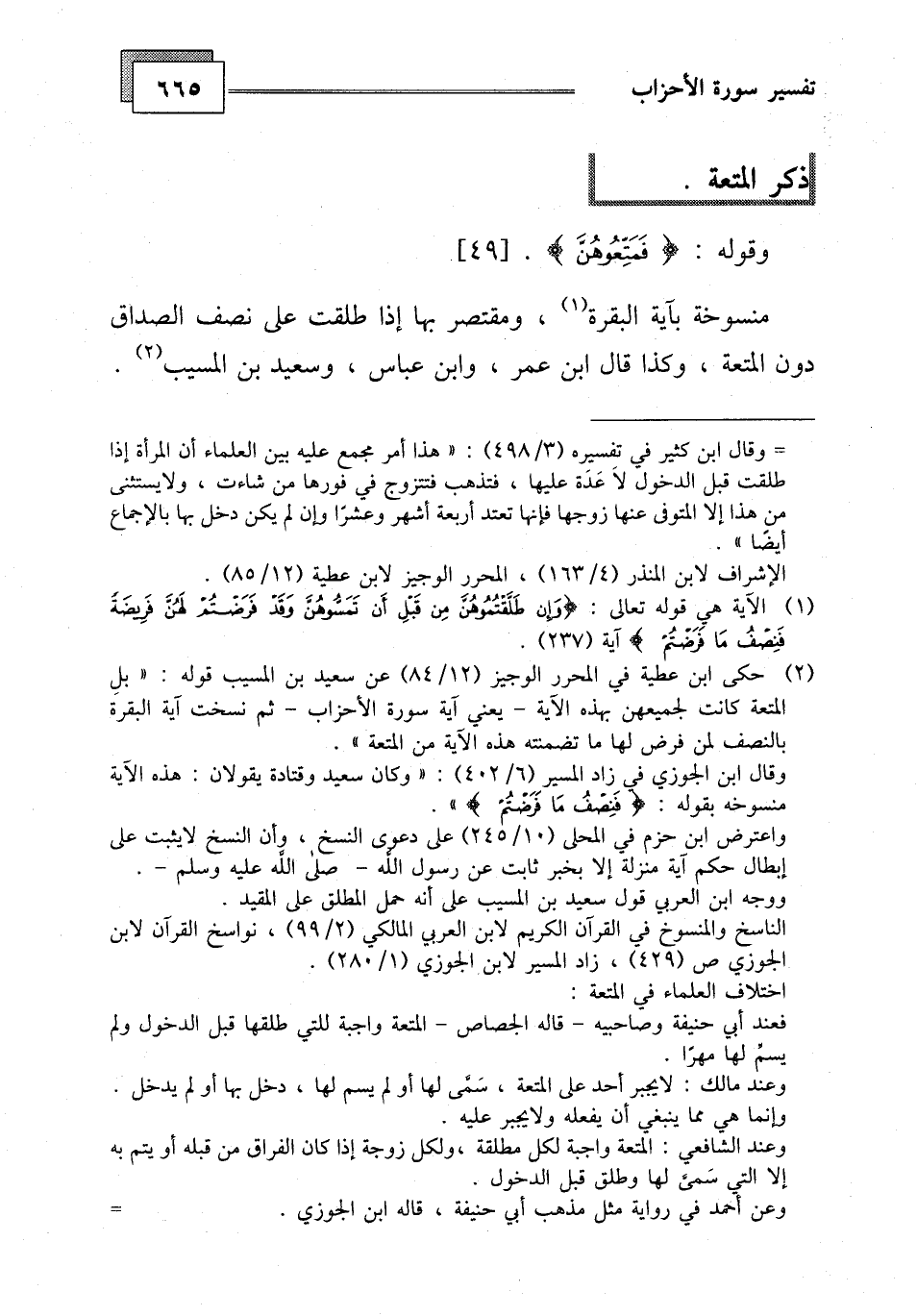 دون المتعة، وكذا قال ابن عمر، وابن عباس، وسعيد بن المسيب.