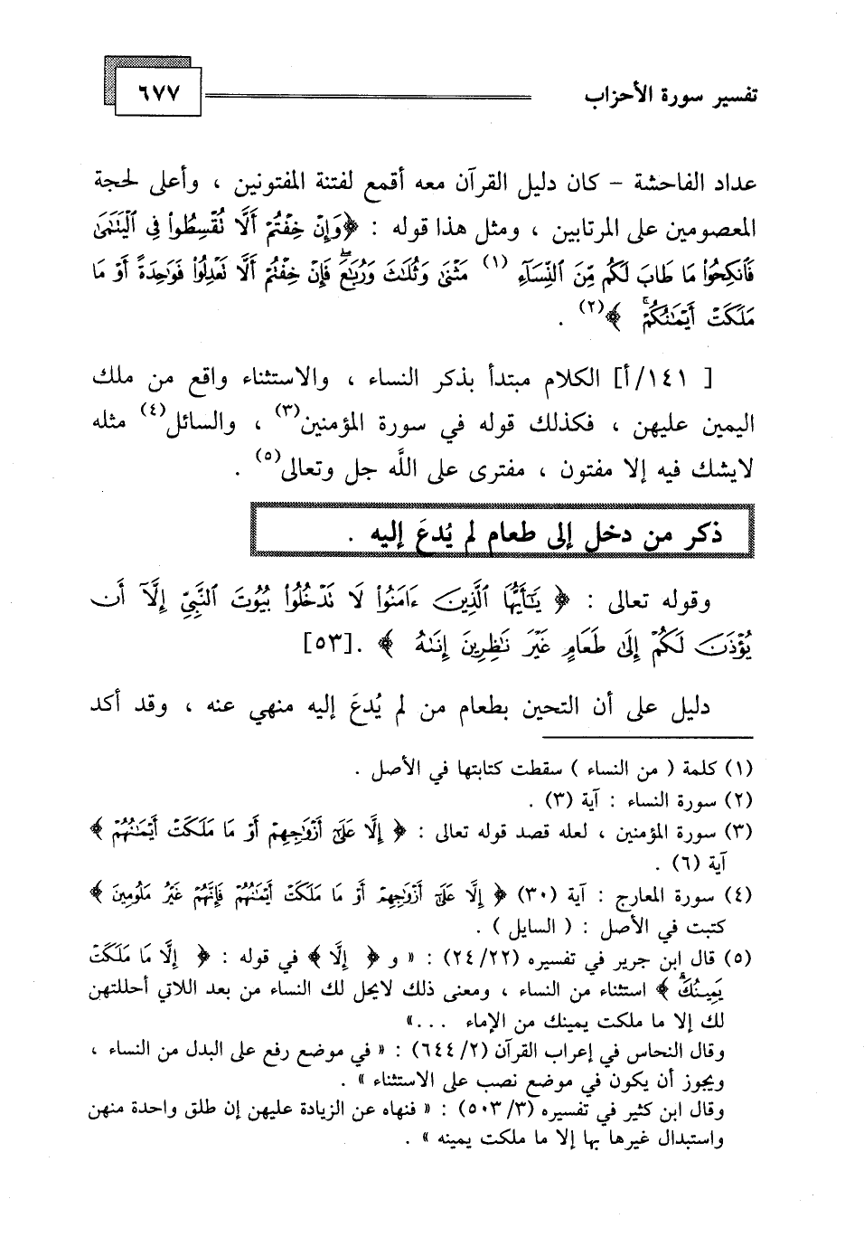 وقوله تعالى: (يَا أَيُّهَا الَّذِينَ آمَنُوا لَا تَدْخُلُوا بُيُوتَ النَّبِيِّ إِلَّا أَنْ يُؤْذَنَ لَكُمْ إِلَى طَعَامٍ غَيْرَ نَاظِرِينَ إِنَاهُ)