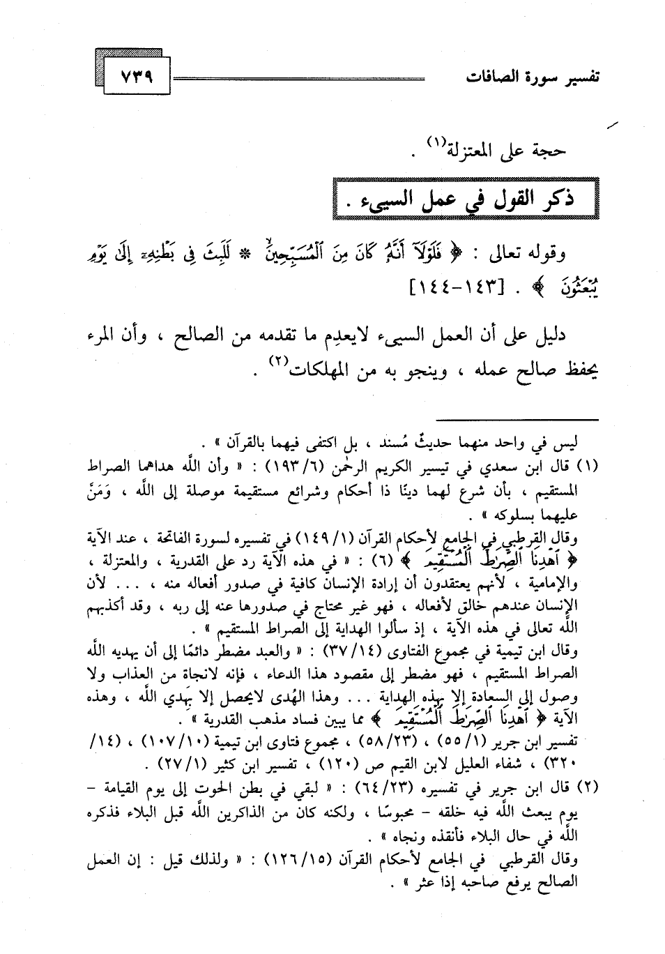 ذكر القول فى عمل السىء.
