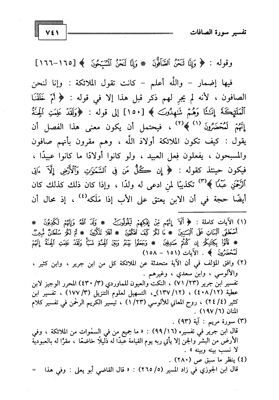 وقوله: (وَإِنَّا لَنَحْنُ الصَّافُّونَ (165) وَإِنَّا لَنَحْنُ الْمُسَبِّحُونَ (166)