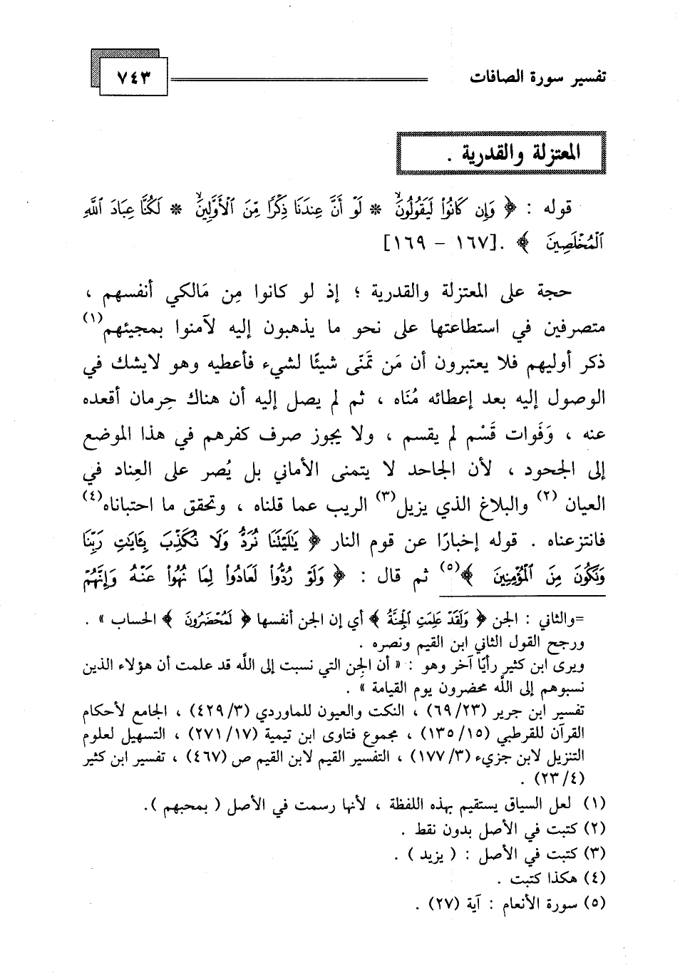 قوله: (وَإِنْ كَانُوا لَيَقُولُونَ (167) لَوْ أَنَّ عِنْدَنَا ذِكْرًا مِنَ الْأَوَّلِينَ (168) لَكُنَّا عِبَادَ اللَّهِ الْمُخْلَصِينَ (169)