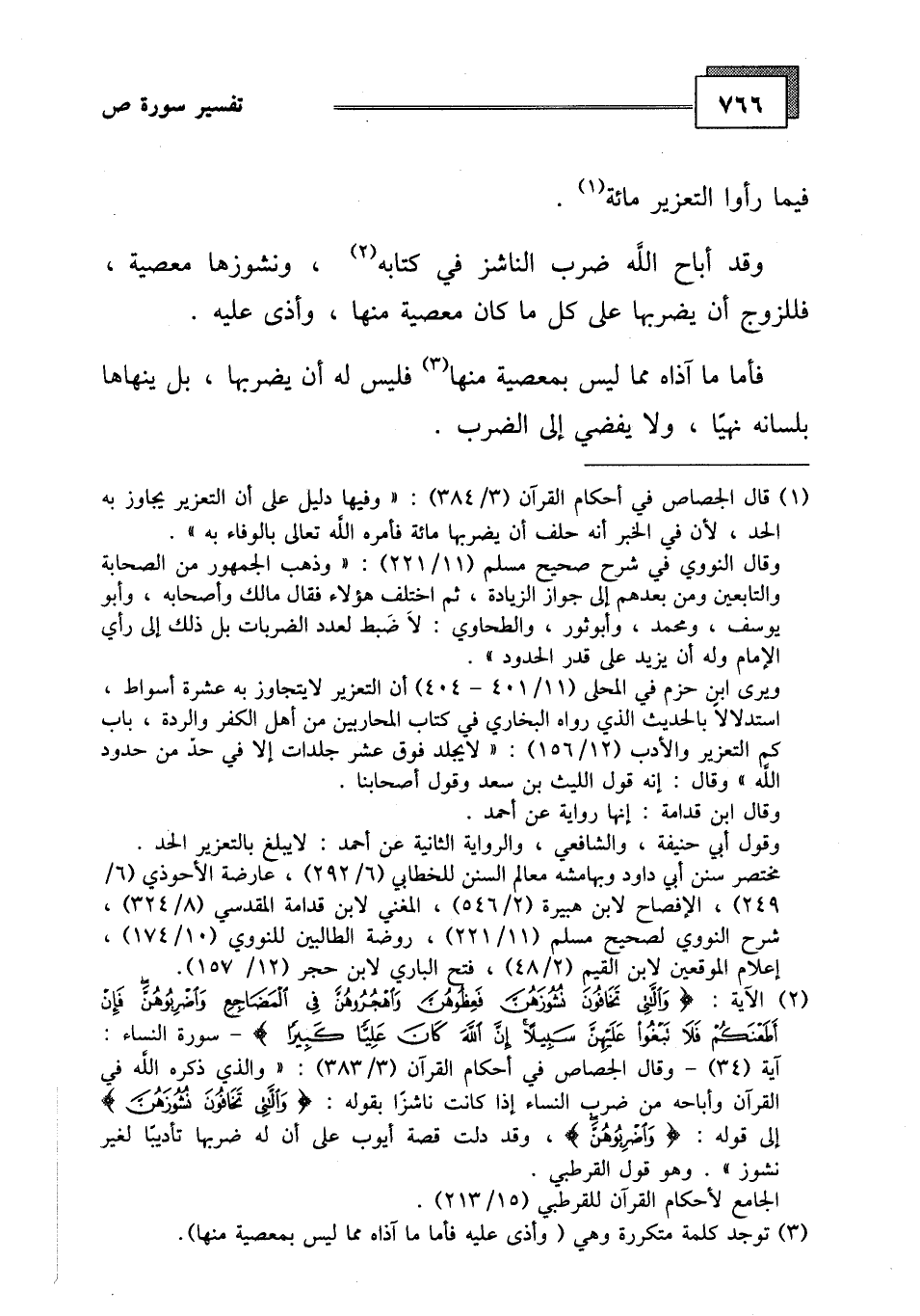 وقد أباح الله ضرب الناشز في كتابه، ونشوزها معصية.
