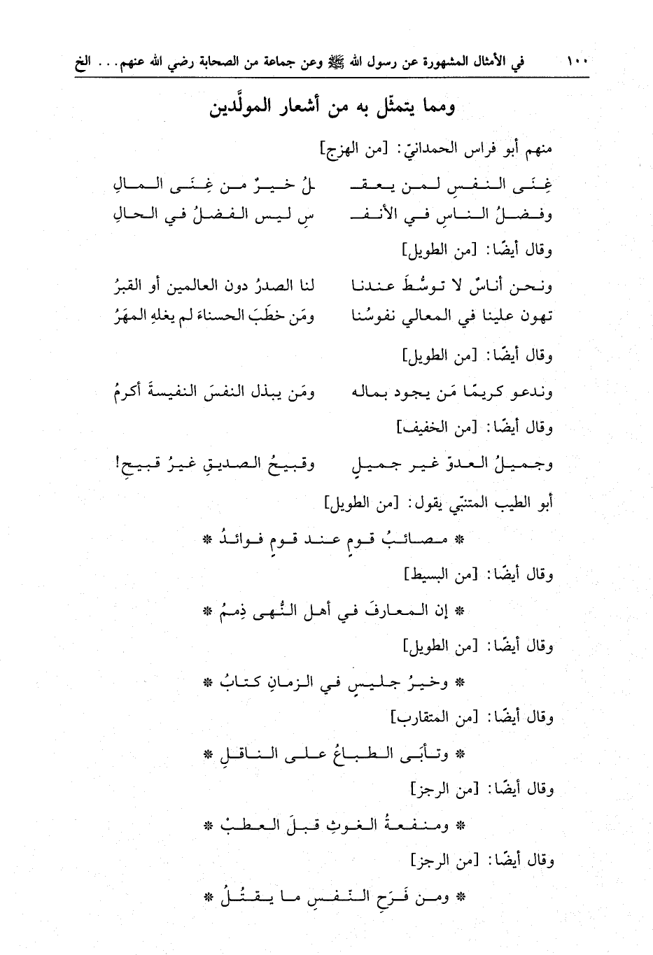 ومما يتمثل به من أشعار المولدين