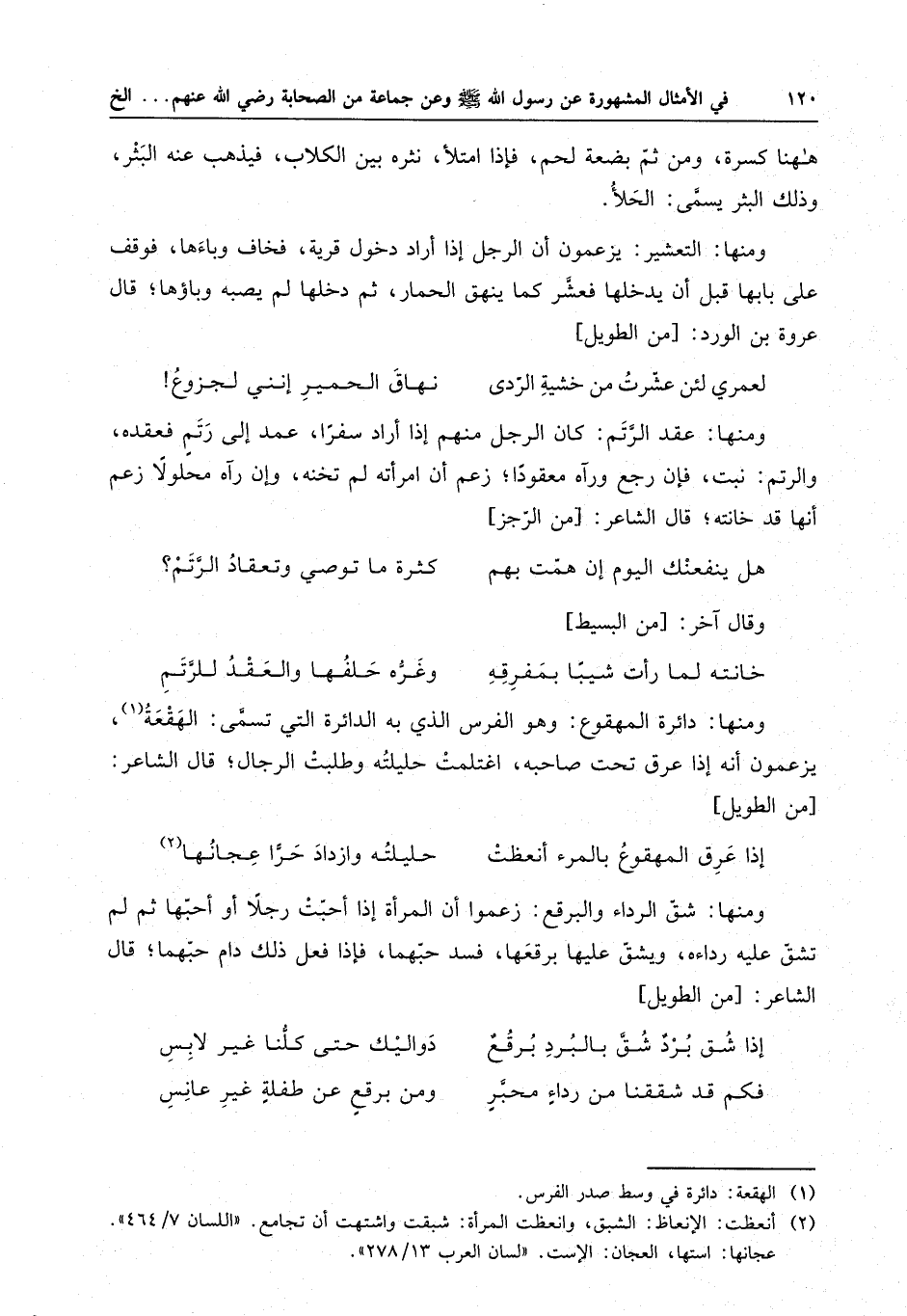 ومنها : دائرة المهقوع : وهو الفرس الذي به الدائرة التي تسمى : الهقعة ، يزعمون أنه إذا عرق تحت صاحبه ، اغتلمت حليلته وطلبت الرجال ، قال الشاعر