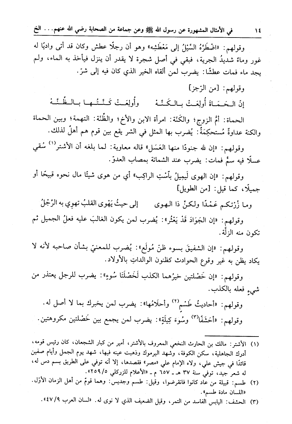 وقولهم : " إن الجواد قد يعثر " : يضرب لمن يكون الغالب عليه فعل الجميل ثم تكون منه الزلة وقولهم : " إن الشفيق بسوء ظن مولع " : يضرب للمعنى بشأن صاحبه لأنه لا يكاد يظن به غير وقوع الحوادث كظنون الوالدات بالأولاد .