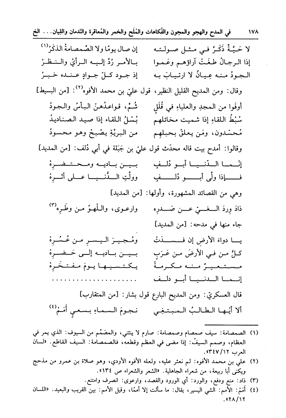 وقال : ومن المديح القليل النظير ، قول علي بن محمد الأفوه :