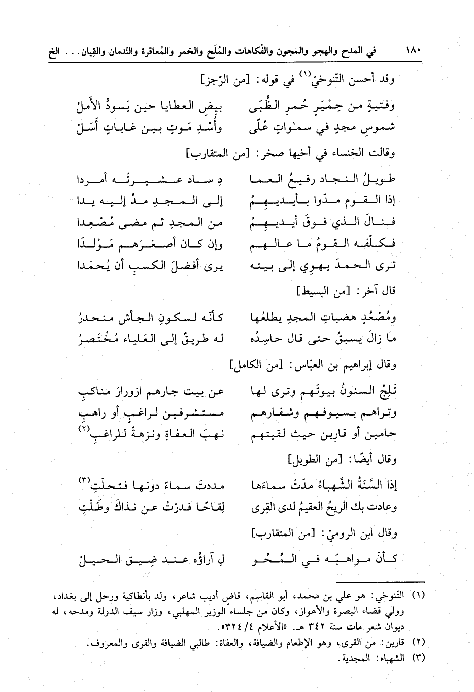 وقد أحسن التنوخي في قوله :
