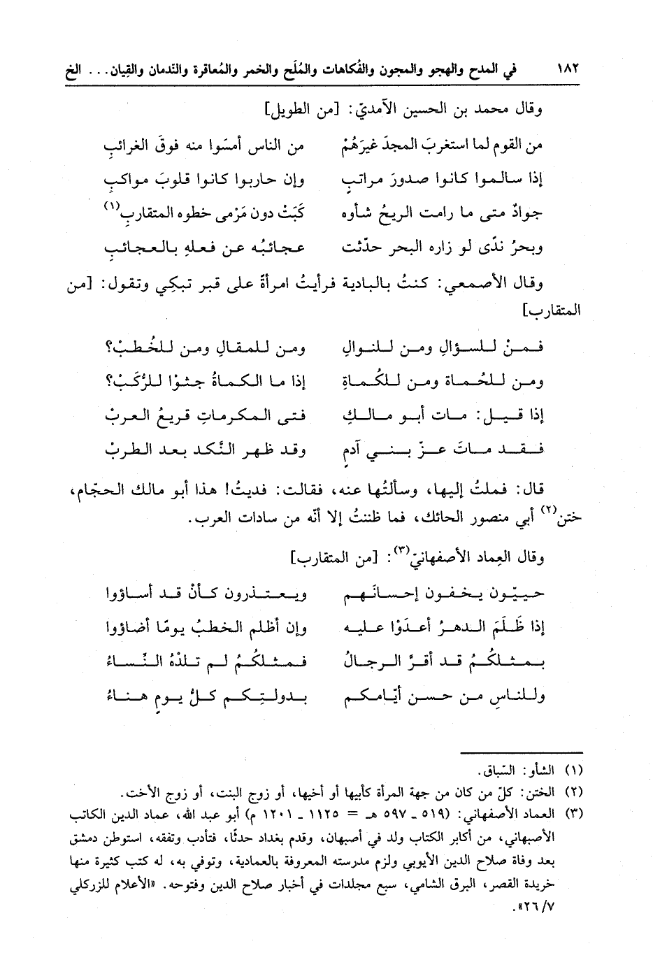 قال : فملت إليها ، وسألتها عنه ، فقالت : فديتك هذا أبو مالك الحجام ، ختن أبي منصور الحائك ، فما ظننت إلا أنه من سادات العرب .