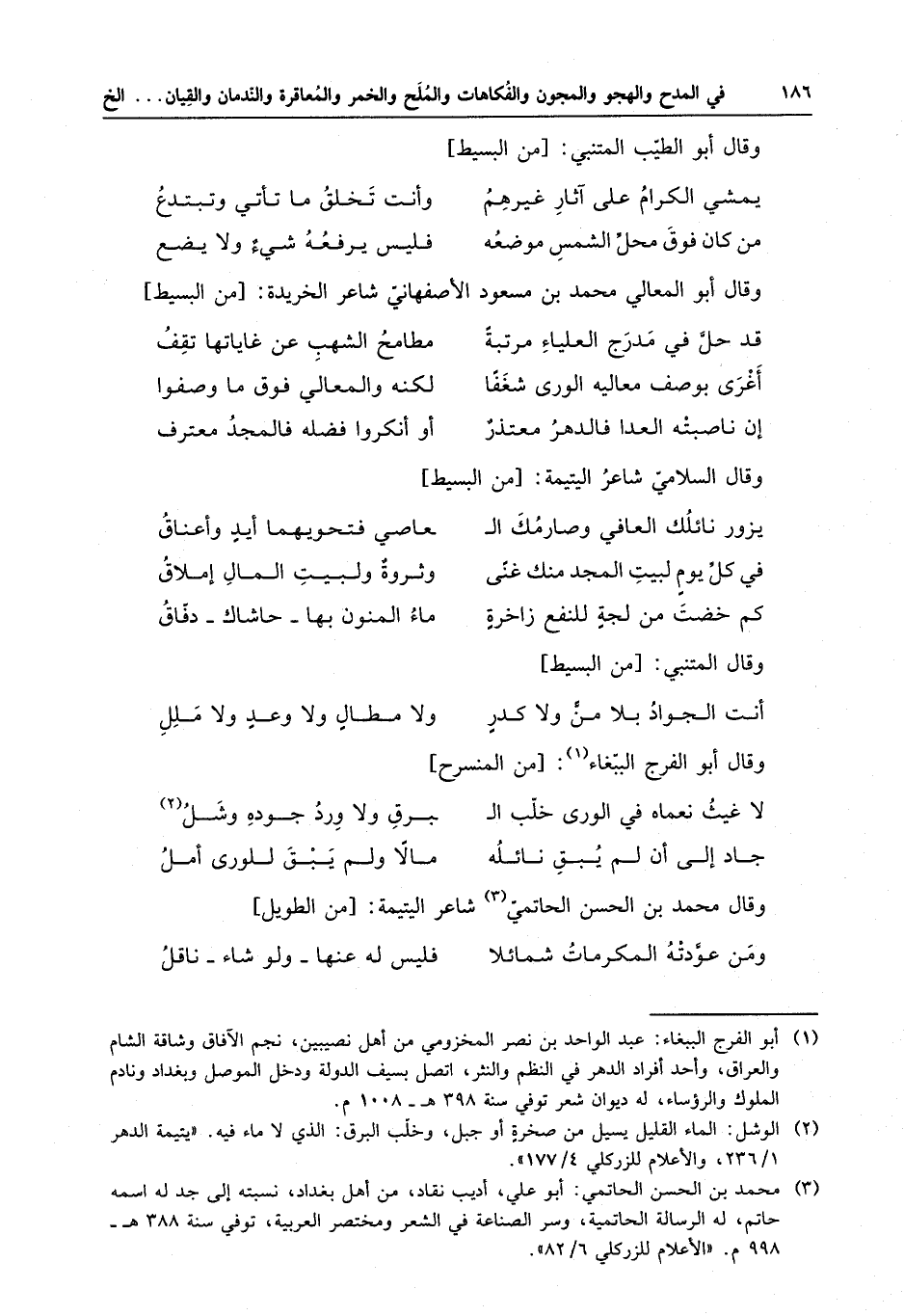 وقال محمد بن الحسن الحاتمي شاعر اليتيمة :