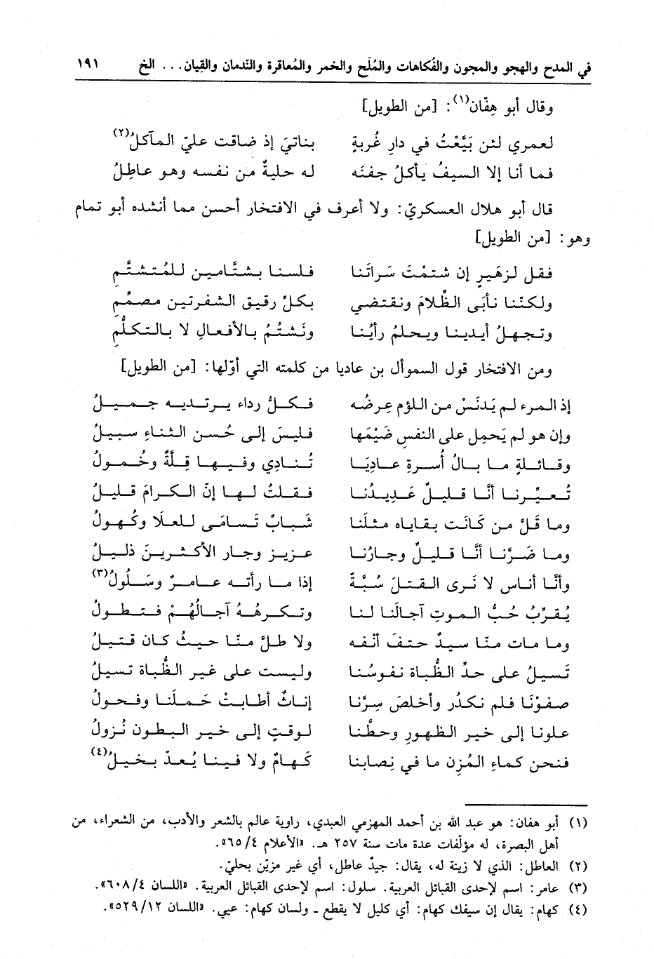 قال أبو هلال العسكري ، ولا أعرف في الافتخار أحسن مما أنشده أبو تمام وهو :