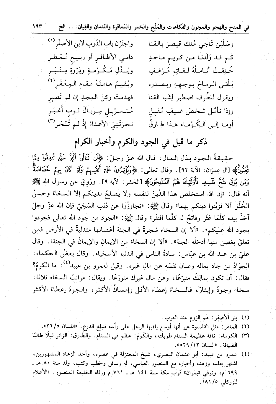 ذكر ما قيل في الجود والكرم وأخبار الكرام