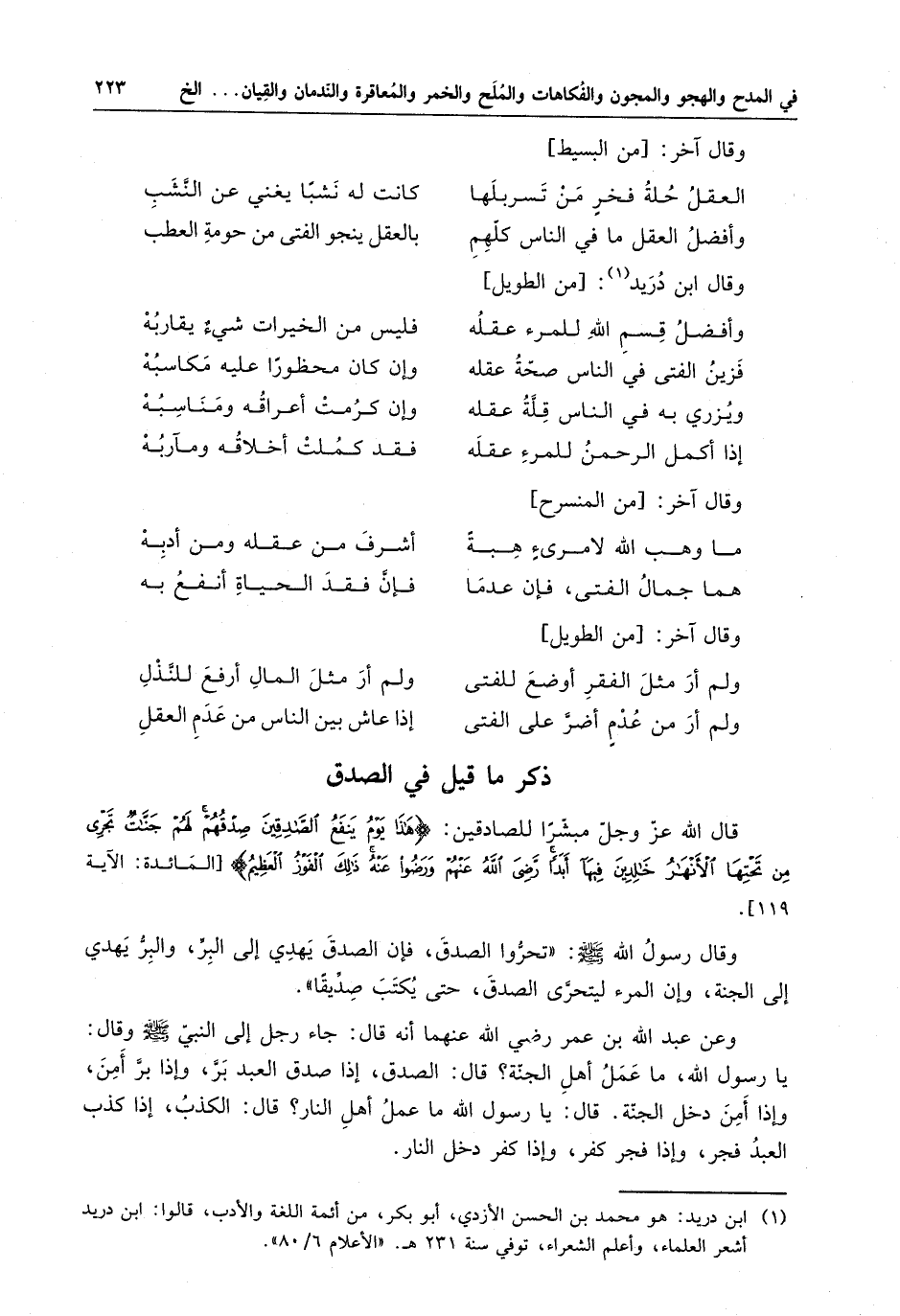 العقل حلة فجرٍ من تسربلها . . . كانت له نشبا يغني عن النشب