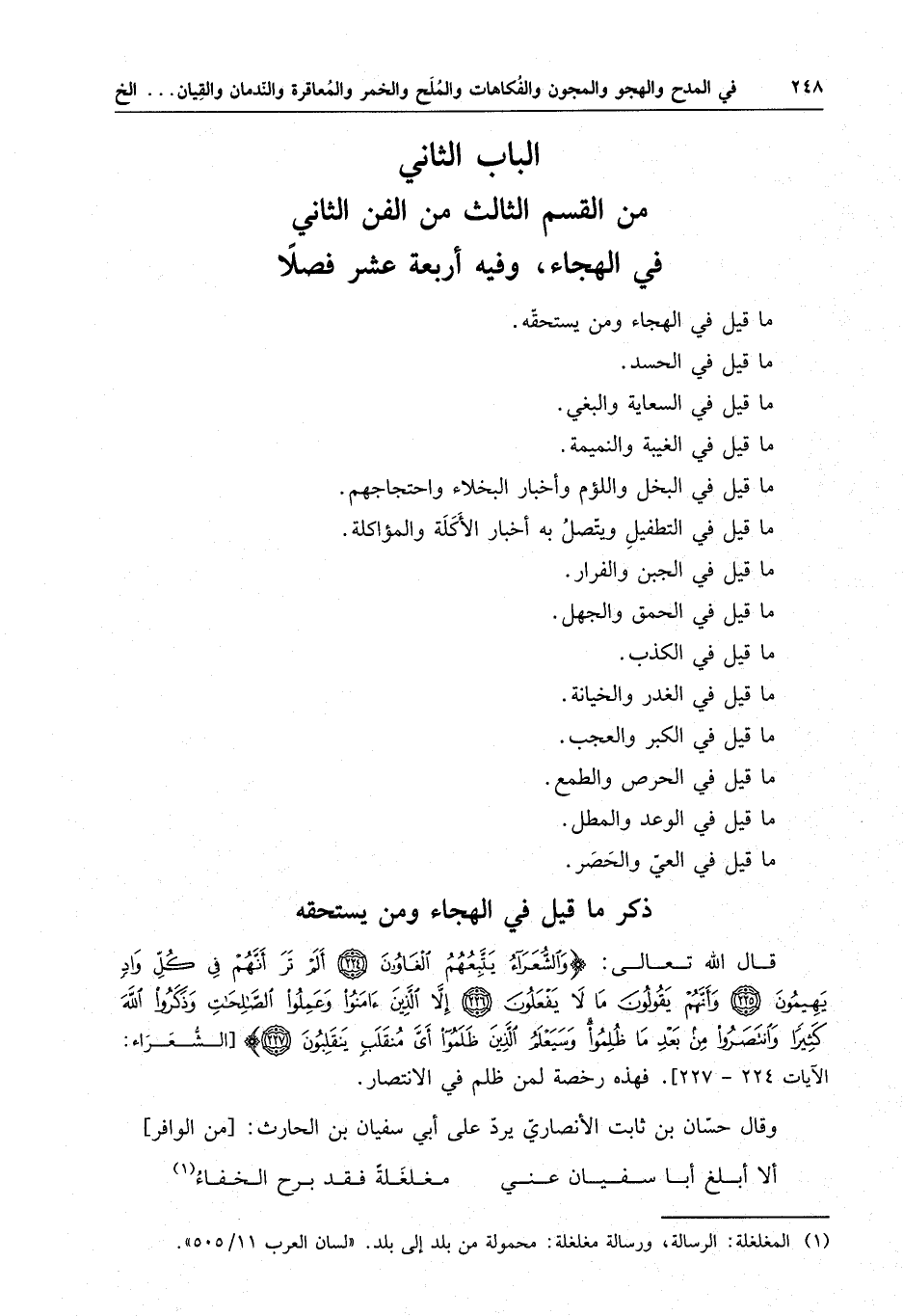 الباب الثاني من القسم الثالث من الفن الثاني في الهجاء وفيه أربعة عشر فصلا