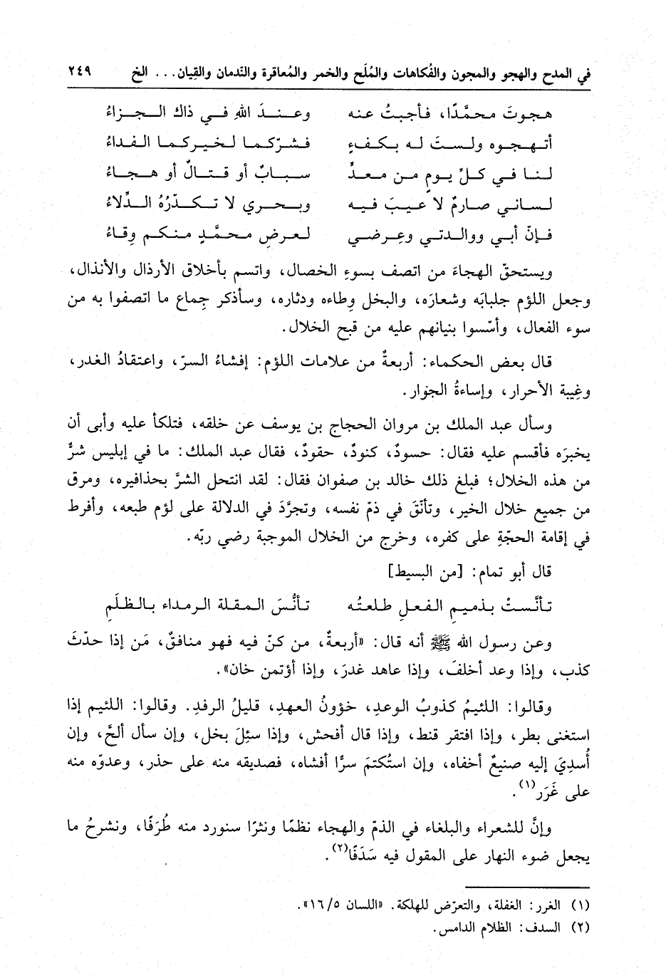 وإن للشعراء والبلغاء في الذم والهجاء نظما ونثرا سنورد منه طرفا ، ونشرح ما يجل ضوء النهار على المقول فيه سدفا .