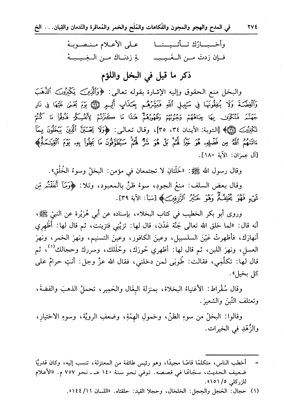 ذكر ما قيل في البخل واللؤم
