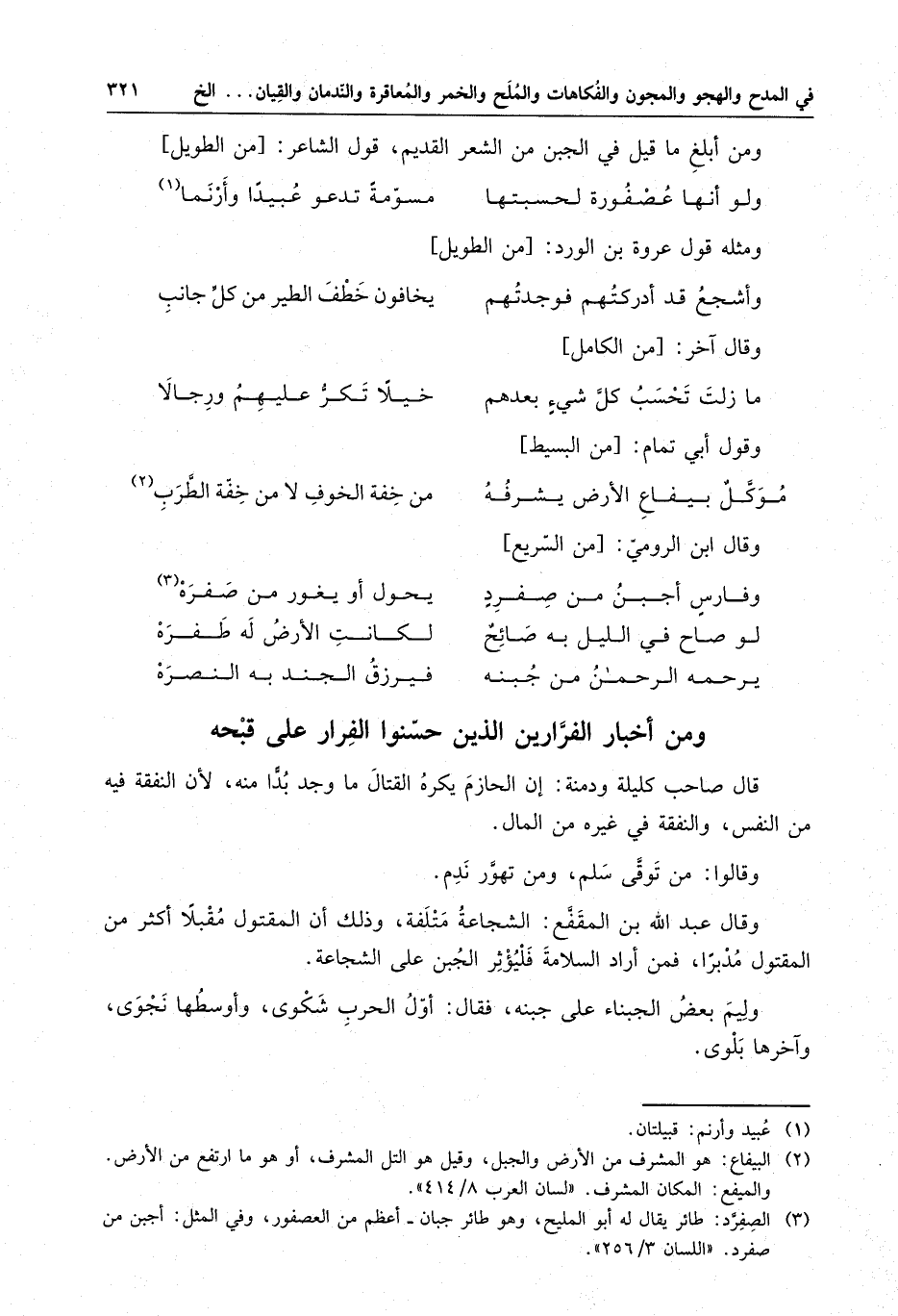 ومن أبلغ ما قيل في الجبن من الشعر القديم ، قول الشاعر :