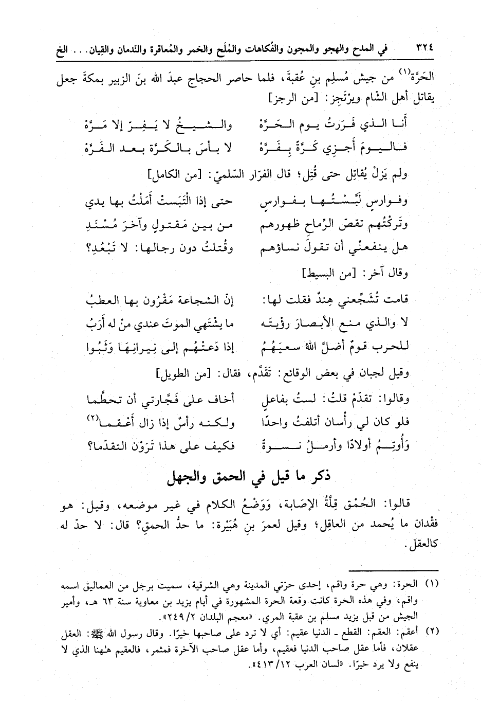 الحرة من جيش مسلم بن عقبة ، فلما حاصر الحجاج عبد الله بن الزبير بمكة جعل يقاتل أهل الشام ويرتجز :